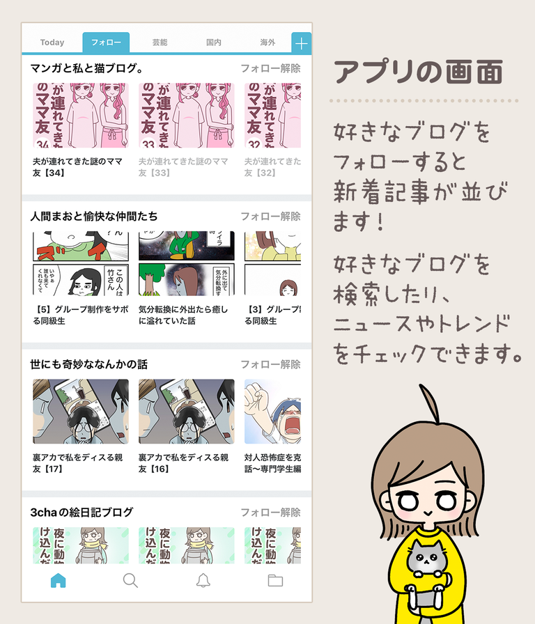 フォローするとアプリ上でブログ記事が読める&