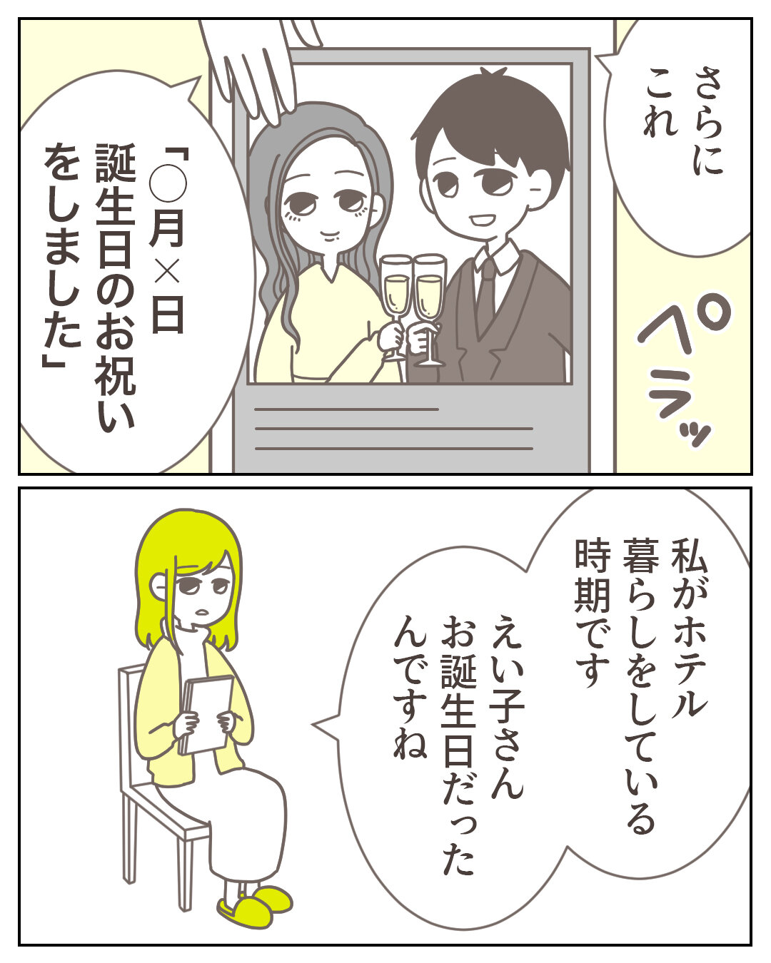 見つからない不倫の証拠【33】 2022/02/07 体験談Episode45-33 1話はこちら 前の話はこちら つづきはこちら▷▶︎電子書籍が発売されました◀︎◁▼▼▼試し読みはこちらから▼▼▼読者登録をするとLINEで最新話の通知がきます!▷▶︎公式LINEはこちら◀︎◁こちらでもブログの更新通知が受け取れます。友達登録よろしくお願いします!▷▶︎その他の漫画はこちら◀︎◁ 「見つからない不倫の証拠」カテゴリの最新記事 タグ :#見つからない不倫の証拠 < 前の記事次の記事 >